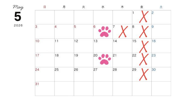 ホーム > イベント・お知らせ | スタッフブログ > 5月のお休み