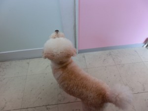 トリミング後は、お迎えに来てくれたママのところへ早く行きたくて